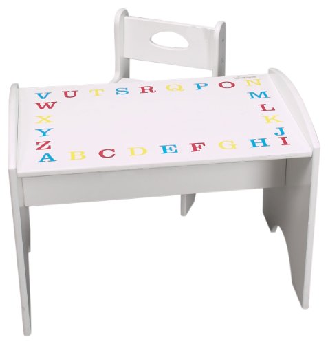 The ABC's Desk and Chair set is just the right size for young children to learn and expand their creativity! Perfect for the bedroom or playroom, this student desk and chair set is durable and easy to clean. The kids' desk is constructed from solid wood and comes in two painted finishes, both with an alphabet theme top. Assembly level/degree of difficulty: Easy.